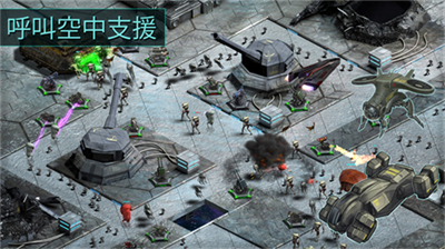 1. 资源管理系统:通过击退敌人获取科技点数,需在塔楼升级、空中支援和新单位研发间做出抉择。有限的资源分配极大考验玩家的预判能力。