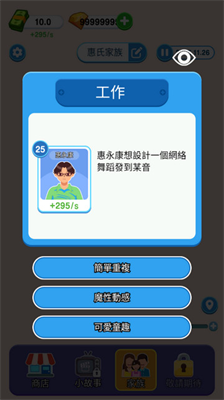 4、商店提供生活、职业相关加成,如智慧或技能提升,玩家可用游戏内资源获取,优化人生路径。网友星辰说:“商店道具帮助我快速成长,游戏体验更顺畅!”