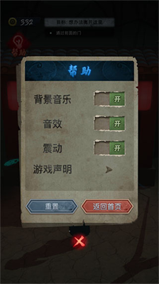 5、游戏设置位于左上角帮助内,玩家可调整背景音乐和震动音效。