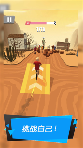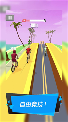 2、在比赛中,玩家需努力击败所有对手,快速抵达终点,同时利用游戏机制阻碍其他竞争者,策略性操作增加趣味性。