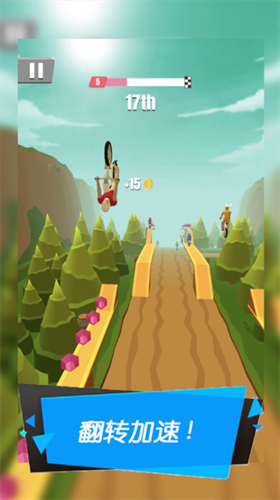 3、游戏设计灵感源于经典越野自行车,玩家驾驶自行车进行跑酷式冒险,操作手感流畅。