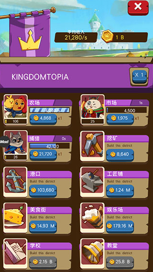 3、游戏操作简单直观,新手也能快速掌握。扮演国王角色,你将见证王国从废墟走向繁荣的过程。建设过程中,需优化布局以最大化游客流量和收益。