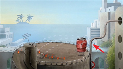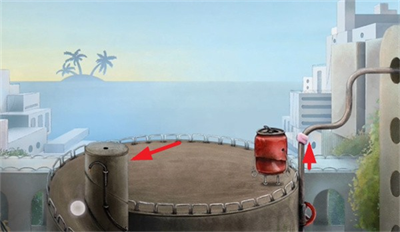 2、使用锤子解开管道螺丝并打破管道,流出的水会熄灭地面火焰,解决环境障碍。