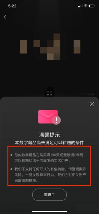 4、如果满足了购买满180天或获赠满两年,即可赠送给朋友。但鲸探不支持任何形式的有偿转增和交易。平台设计这一时间限制是为了防止短期投机行为,鼓励用户长期持有和欣赏数字艺术。一旦条件满足,转赠过程即刻生效:接收方会收到系统通知,确认接受后,藏品所有权正式转移。鲸探强调,任何试图绕开规则的行为,如私下交易或第三方平台转卖,都将导致账号封禁。用户应通过官方渠道报告问题,以维护自身权益。通过合规转赠,鲸探为用户提供了安全获取藏品的途径,同时推动了数字收藏文化的正向发展。