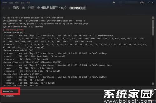 步骤五:在控制台底部输入命令行【licenses_print】,按回车键执行。命令触发游戏许可证验证流程,输出相关信息到屏幕。此步骤强制系统检查游戏数据完整性,预防账号异常。输入时注意拼写准确,避免语法错误。