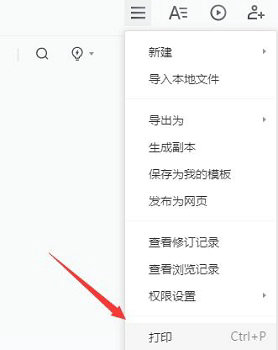 2、然后,定位到文档右上角的三横线菜单图标。该图标通常位于界面顶部工具栏,代表更多功能选项。用户点击后,会展开下拉菜单列表,其中包含打印、导出等实用工具。注意确认菜单是否完全展开,避免误操作影响后续步骤。这一设计简洁易用,适合各类用户快速上手。