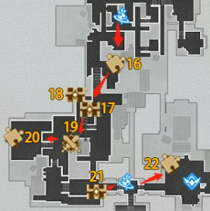4、玩家继续沿着路线图前进,在此区域可找到六个宝箱。寻找第十六个宝箱时,需执行罗盘解谜:内圈旋转两次,外圈旋转一次,注意罗盘上的刻度线对齐。第二十个宝箱则要求魔方解谜:右边部分旋转三次即可解锁。此阶段宝箱分布较分散,玩家需穿越多个小场景,包括桥梁和平台。建议使用角色移动技能加速进程,同时留意环境线索如发光标记或声音提示。每个宝箱的收集过程都需细致操作,确保不触发重置机制。