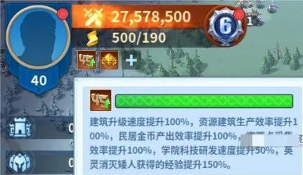 为协助领主更好地适应S2赛季的战场环境,新赛季开启后,所有玩家将获得全局加速增益效果。该BUFF包含多项提升:建筑升级速度增加100%,大幅缩短建设周期;资源建筑生产效率提升100%,确保资源稳定供应;民居金币产出效率提升100%,强化经济基础;资源点采集效率提升100%,加速资源获取;学院科技研发速度提高50%,促进技术发展;英灵消灭矮人获得的经验值提升150%,加速角色成长。这些综合加速效果旨在降低新手门槛,让玩家快速融入激烈战局。