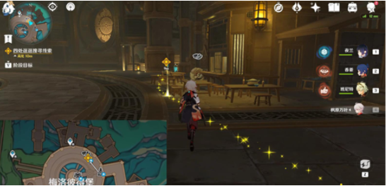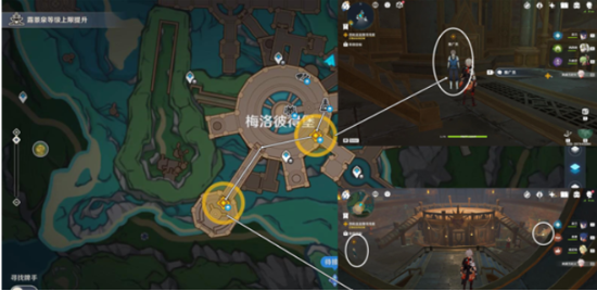 传送回梅洛彼得堡起点,按顺时针方向再次环绕区域,这次在楼梯旁与推广员对话,收集额外信息。之后,前往拳力斗技场,依据系统图示指引,与科斯林对话或阅读地上散落的资料,这些互动提供任务关键细节,帮助玩家构建完整线索链。